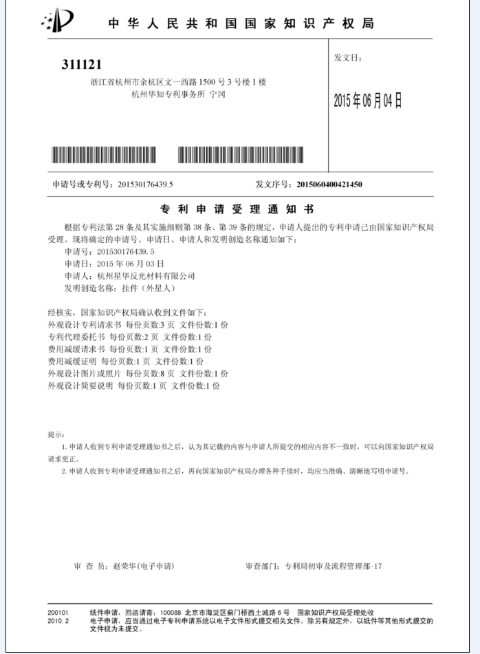 申請時間:2015年6月3日。受理時間:2015年6月4日。